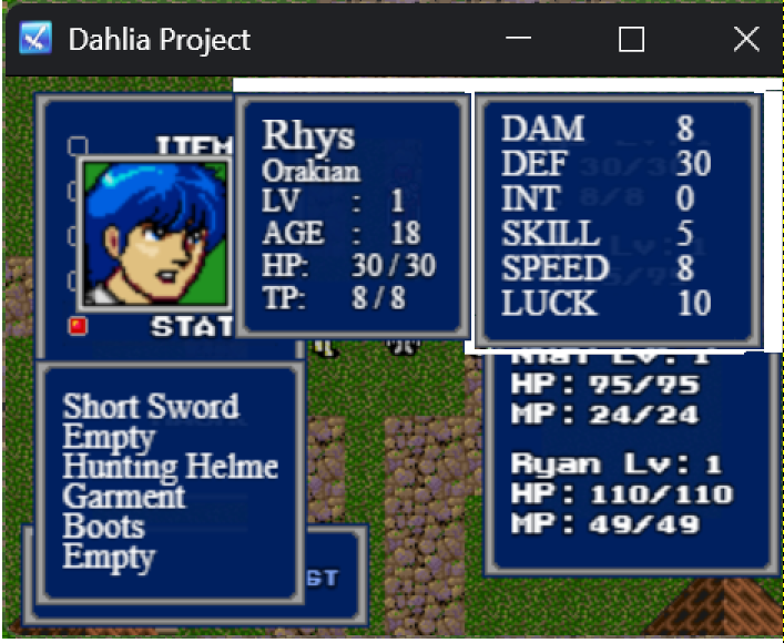 We've been working hard trying to get the many mechanical aspects of the game implemented and working. Menus, Battles and anything else that requires us to bend RPG Maker into a shape its unfamiliar with.
