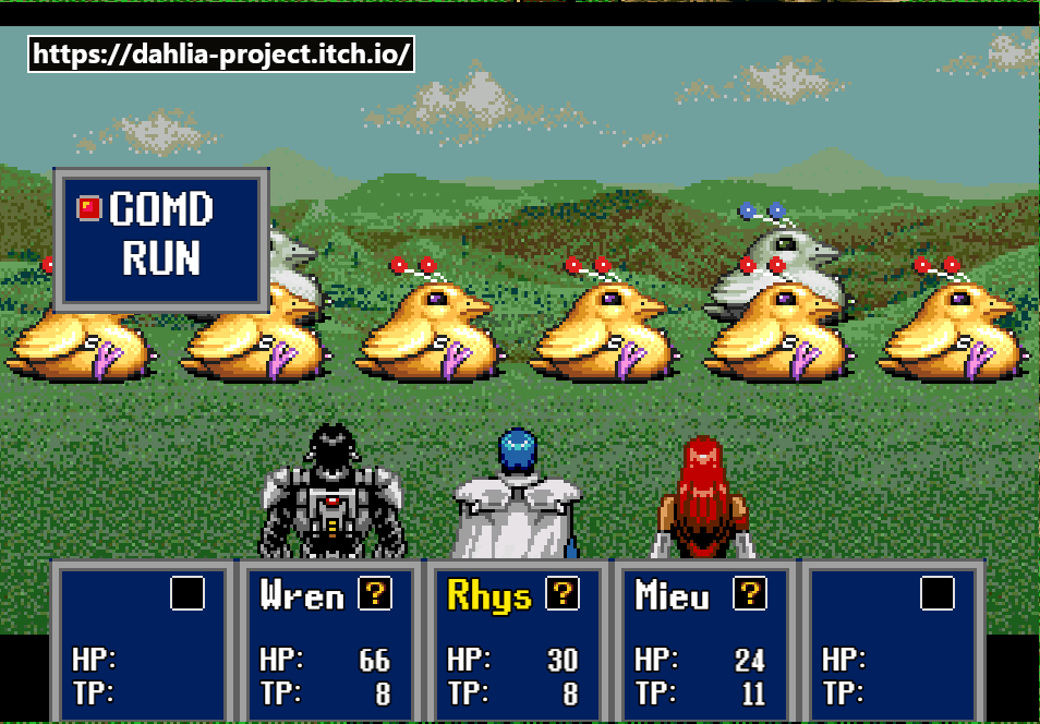 PSIII Style Weapon Targeting with enemies split into 'Groups' and 'Rows'(Back and Front) for different weapon attacks and skills.